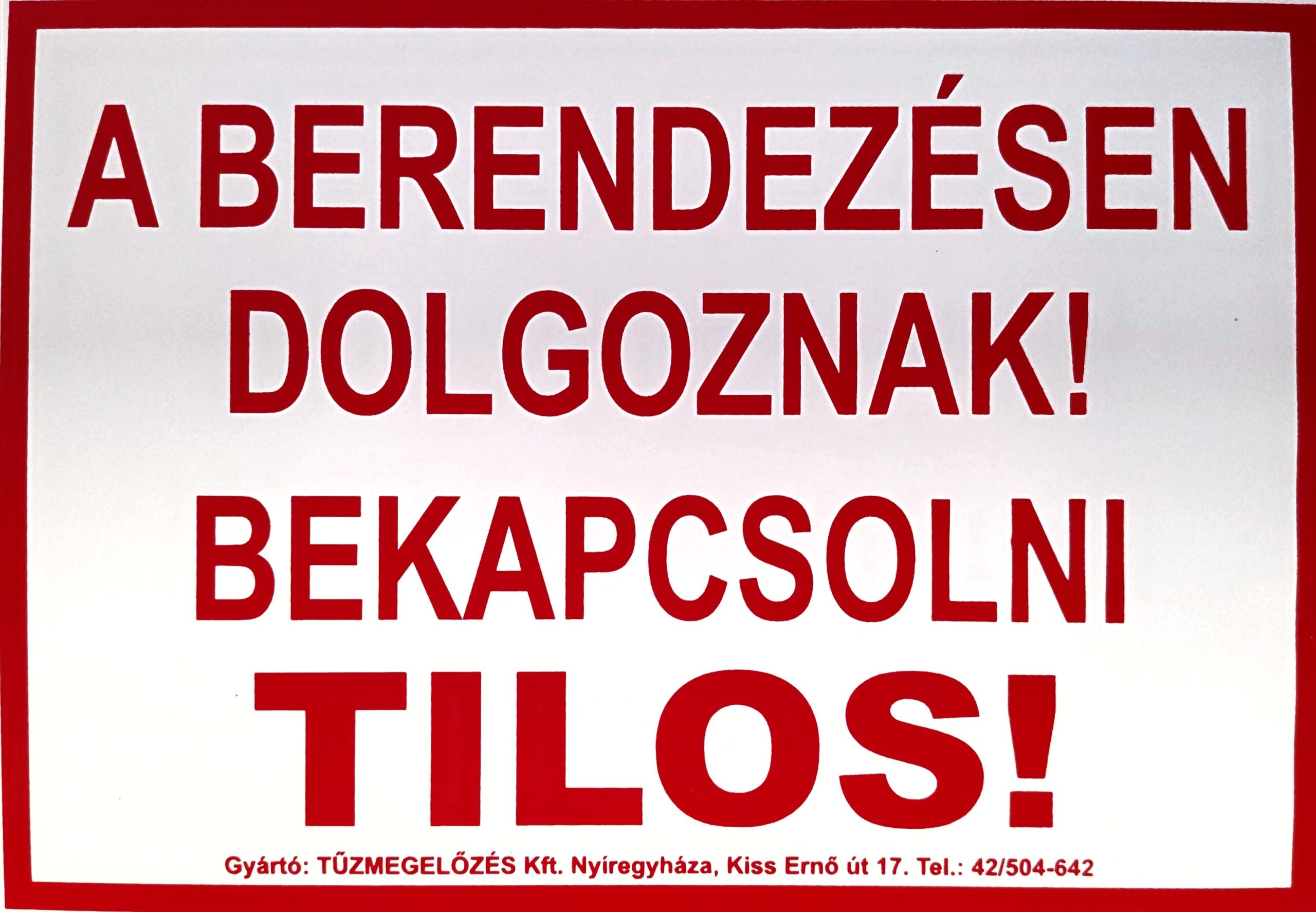 A berendezésen dolgoznak! Bekapcsolni tilos!