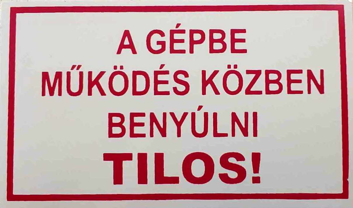 A gépbe működés közben benyúlni tilos!